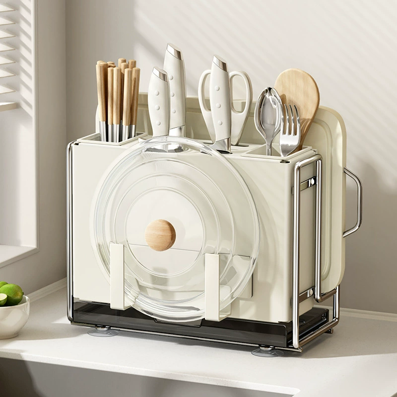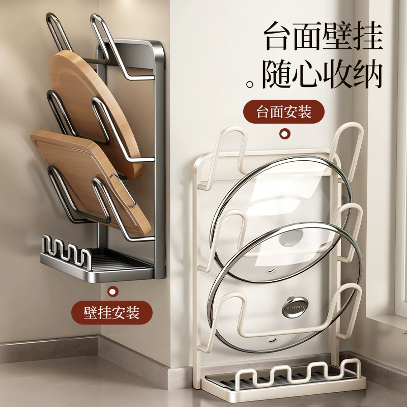 天地鱼厨房锅盖架台面厨房置物架壁挂两用锅铲架收纳砧菜板放置器