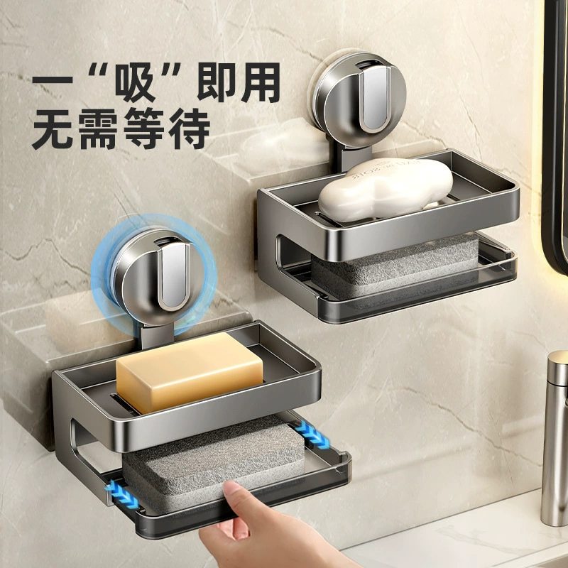 卫生间吸盘肥皂盒壁挂式免打孔香皂盒家用浴室沥水海绵擦置物架子