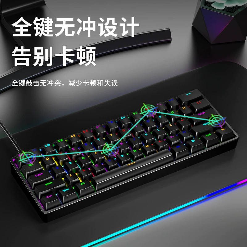 AK61机械键盘青轴红轴台式机笔记本电脑有线RGB游戏桌面键盘