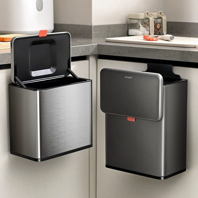 天地鱼厨房桌面收纳桶不锈钢垃圾桶家用挂式厨余折叠壁挂式卫生间