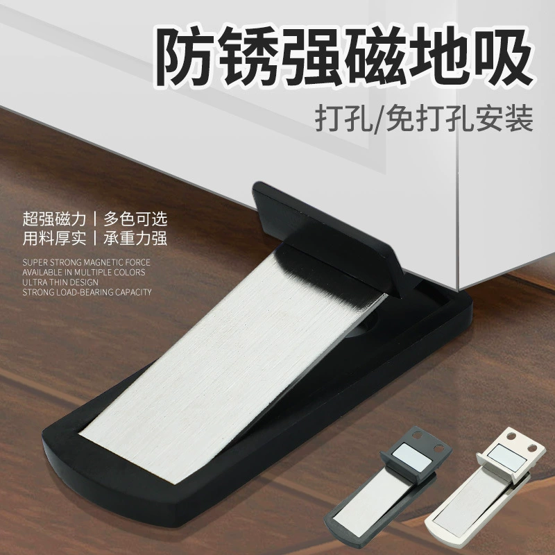 超薄隐形地吸免打孔新款防撞阻门极窄边框锌合金强磁玻璃门吸门挡