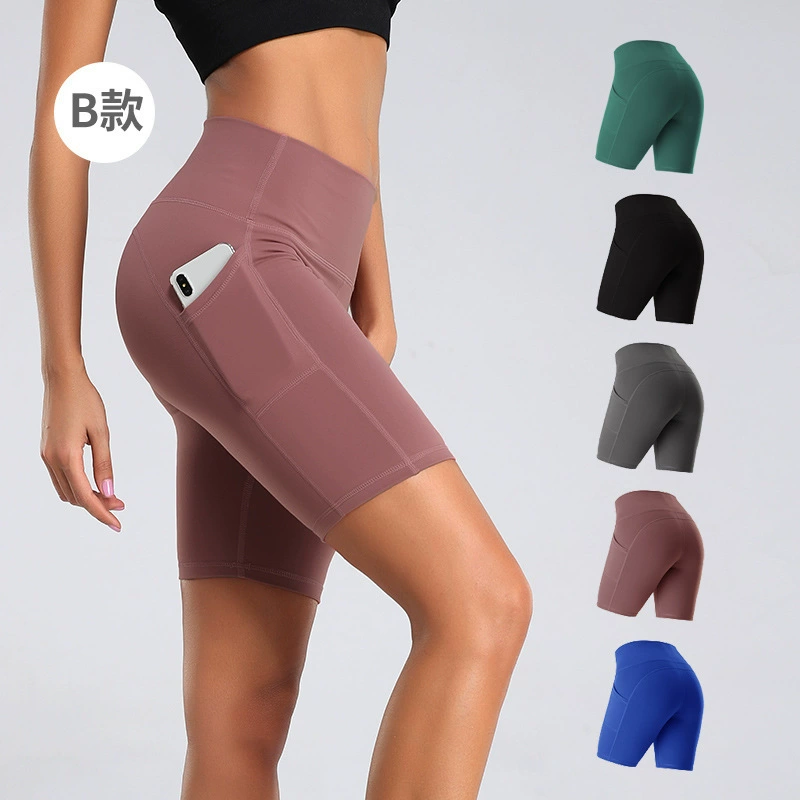 外贸lulu瑜伽裤高腰运动速干五分短裤口袋紧身提臀健身裤女