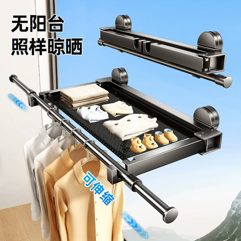天地鱼吸盘折叠晾衣架阳台晾衣神器隐形伸缩晾衣杆室内晒被子衣架