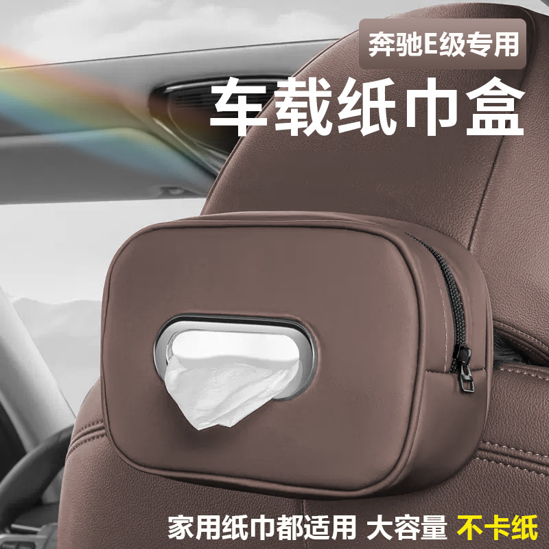 适用奔驰车载纸巾盒E/C/A级真皮glc/glb/e300l车内用品260l抽纸袋