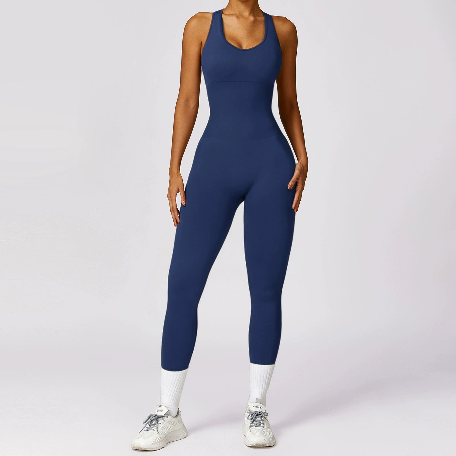 高弹健身背心无缝空中瑜伽连体服收腹紧身运动美背连衣长裤女
