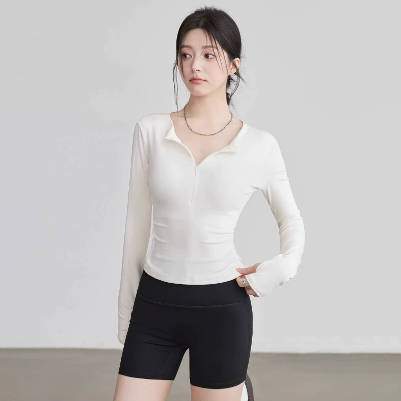 裸感亲肤秋冬普拉提瑜伽服女长袖跑步训练运动健身服上衣代发