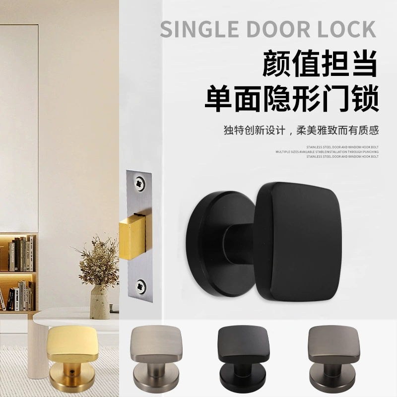 方形锁卧室门木门嵌入式隐形门锁单面双面暗门门锁锌合金把手