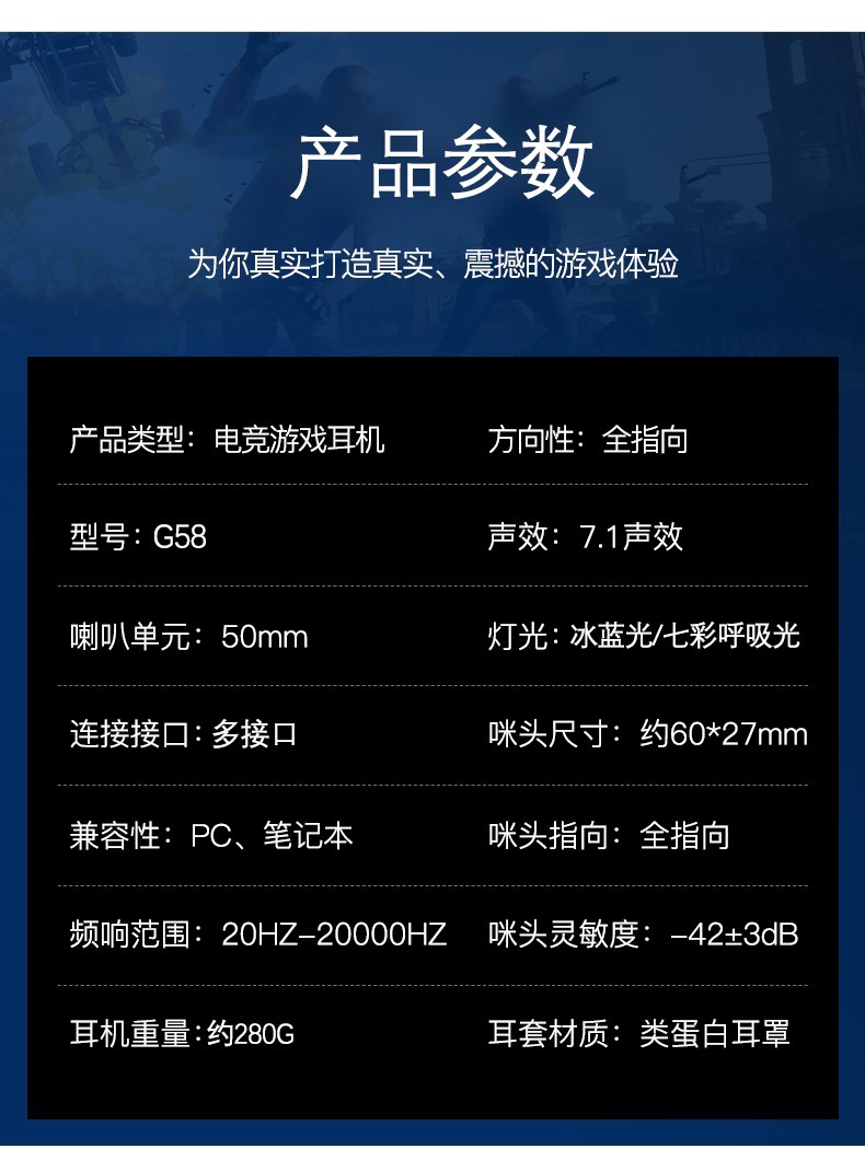 G58电脑耳机头戴式电竞游戏7.1声道吃鸡有线耳麦带麦克风耳机