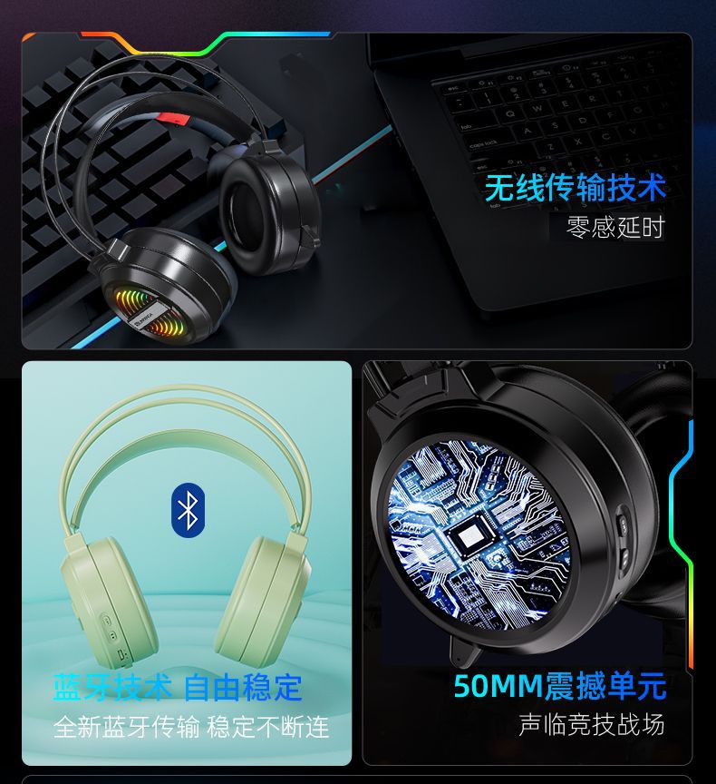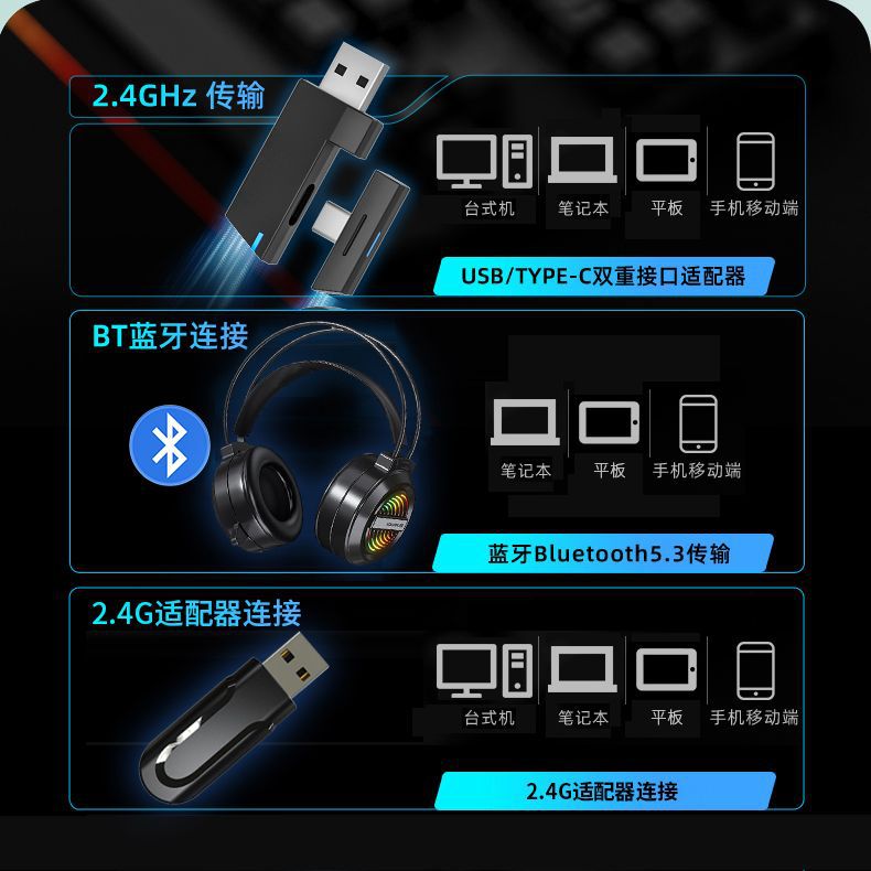 T9电脑耳机头戴式无线蓝牙2.4G耳麦游戏电竞降噪带麦电脑手机