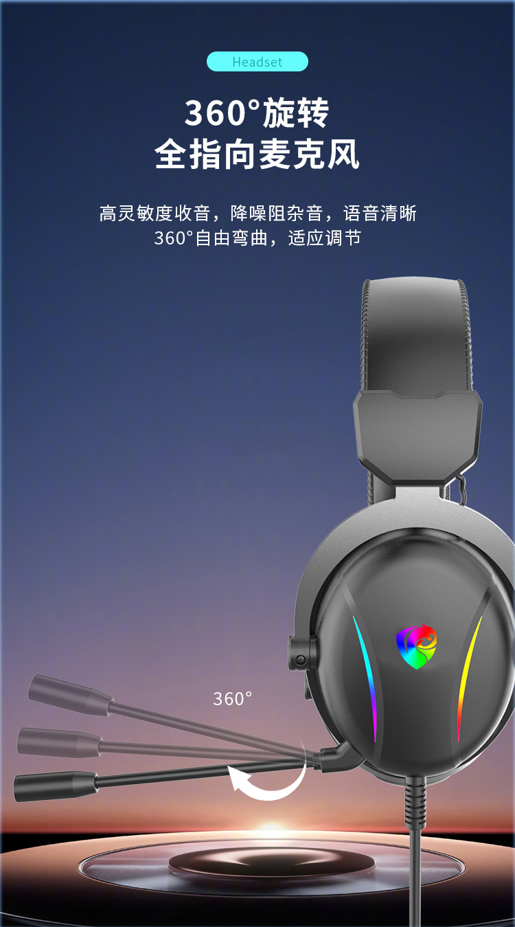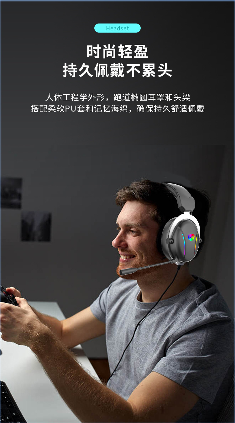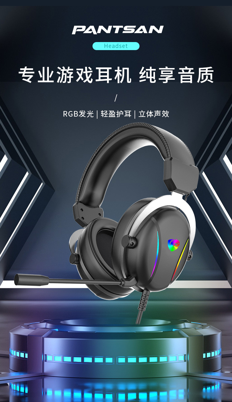 潘森PSH-500电竞专用耳机头戴式台式电脑游戏有线耳麦带麦降噪式