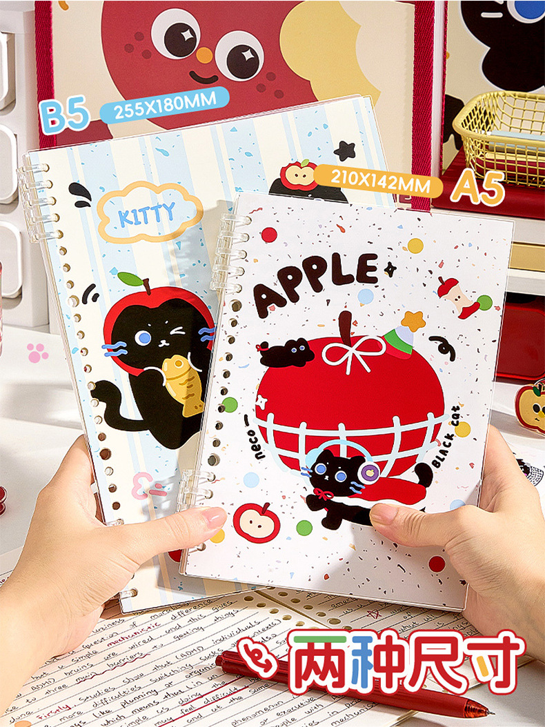 咔巴熊美式苹果活页本高颜值线圈学生可爱女生笔记本本子日记文具