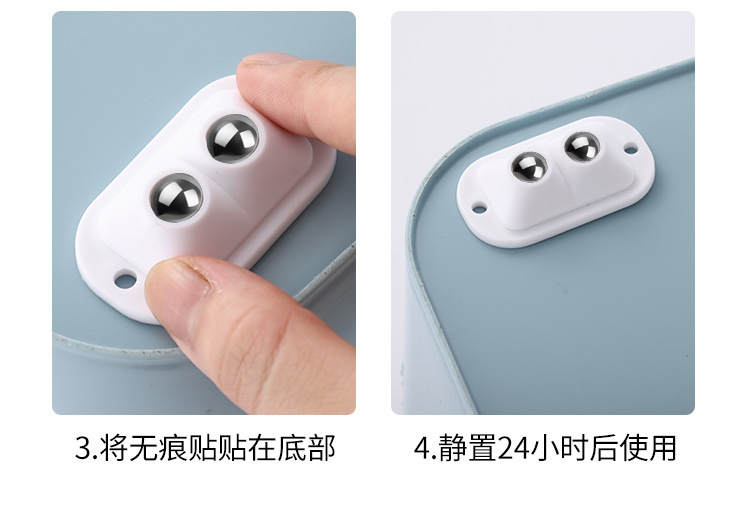 收纳箱垃圾桶粘贴式万向滑轮 家具移动底座免打孔滚珠式粘贴滑轮