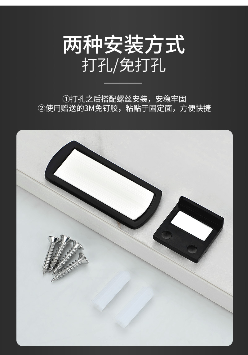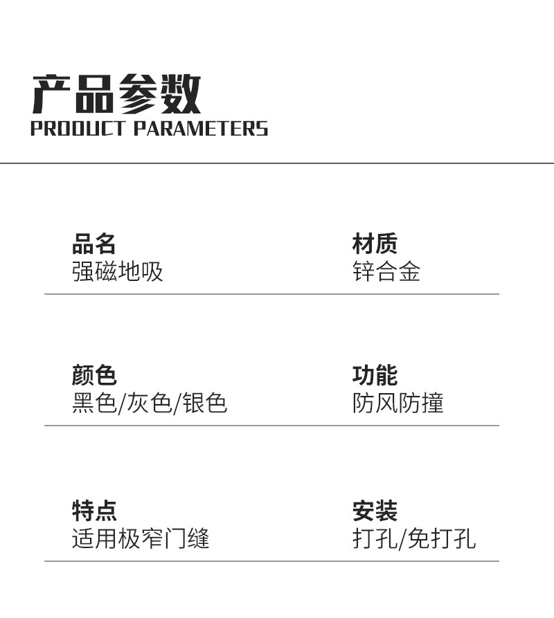超薄隐形地吸免打孔新款防撞阻门极窄边框锌合金强磁玻璃门吸门挡