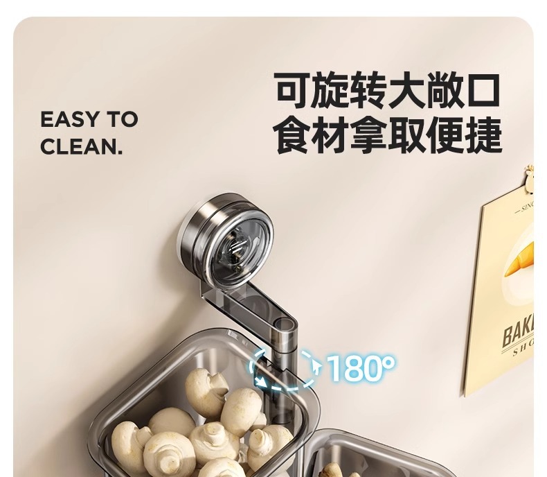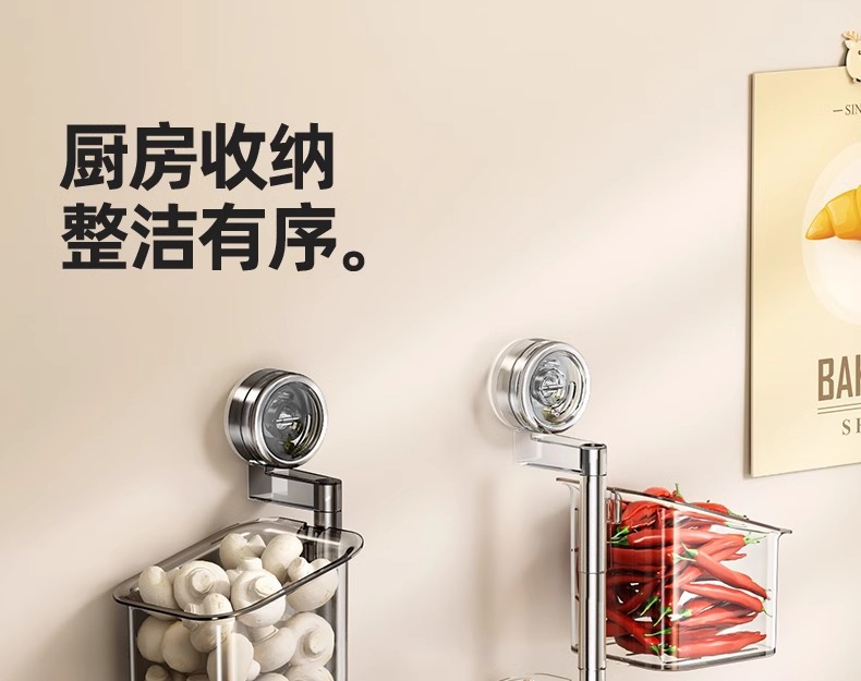 天地鱼厨房葱姜蒜收纳盒吸盘置物架壁挂生姜大蒜收纳神器免打孔筐