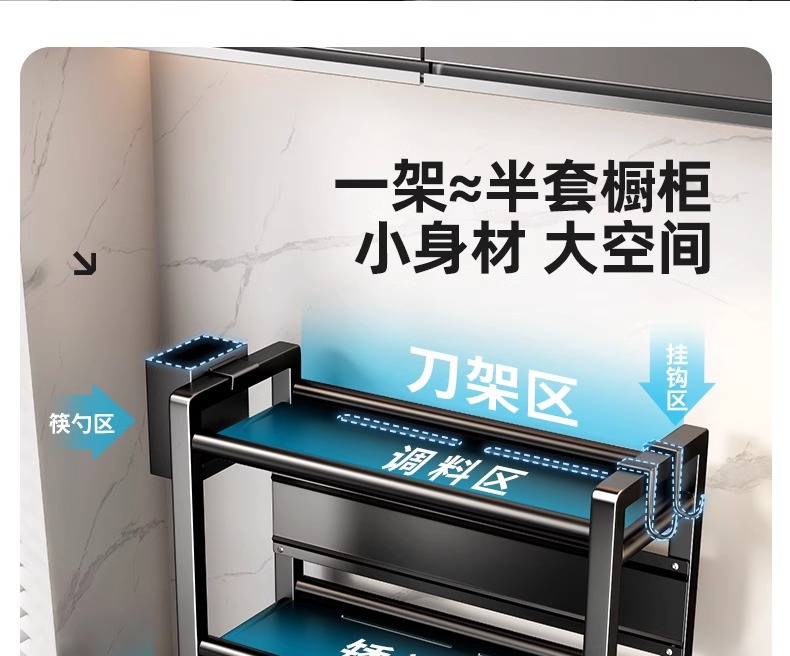 天地鱼厨房多功能调料品置物架家用台面筷子筒刀具油盐酱醋收纳架