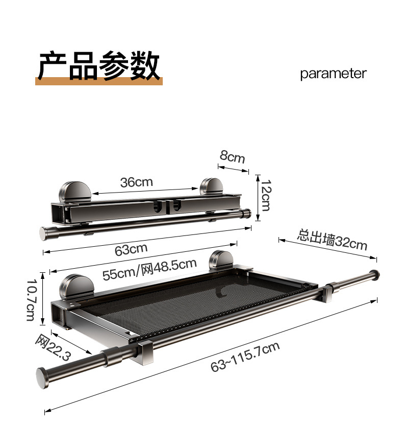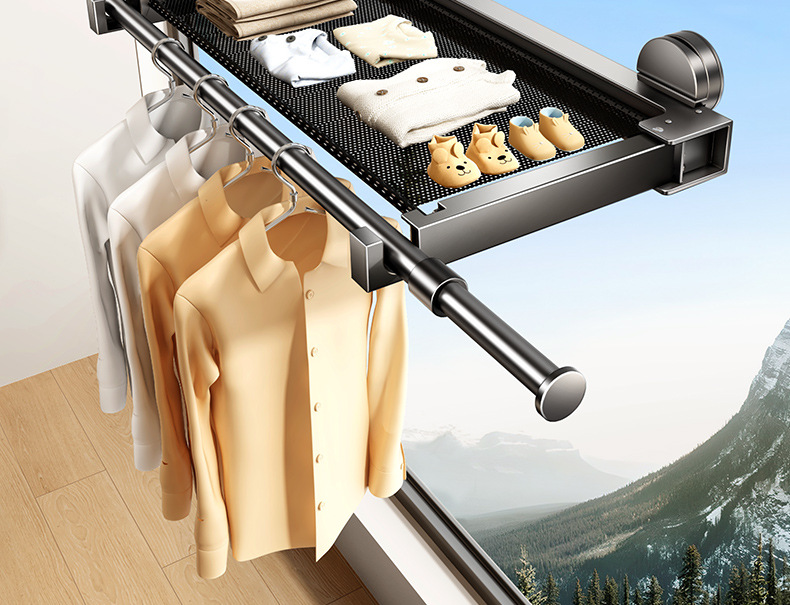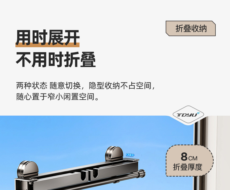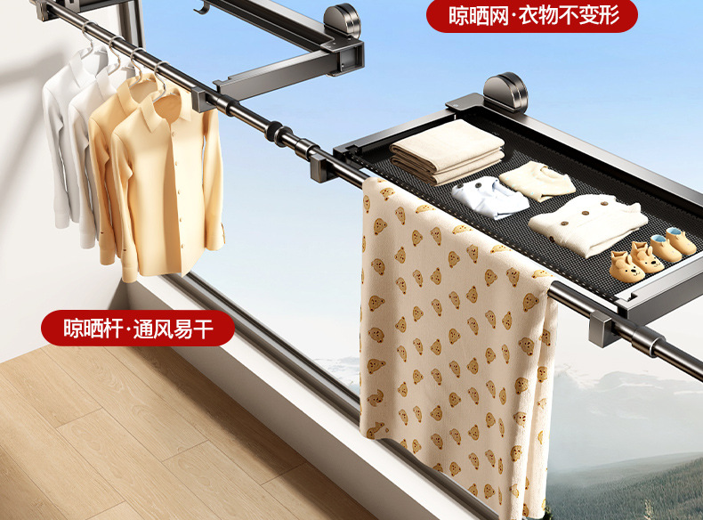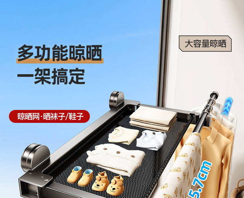 天地鱼吸盘折叠晾衣架阳台晾衣神器隐形伸缩晾衣杆室内晒被子衣架